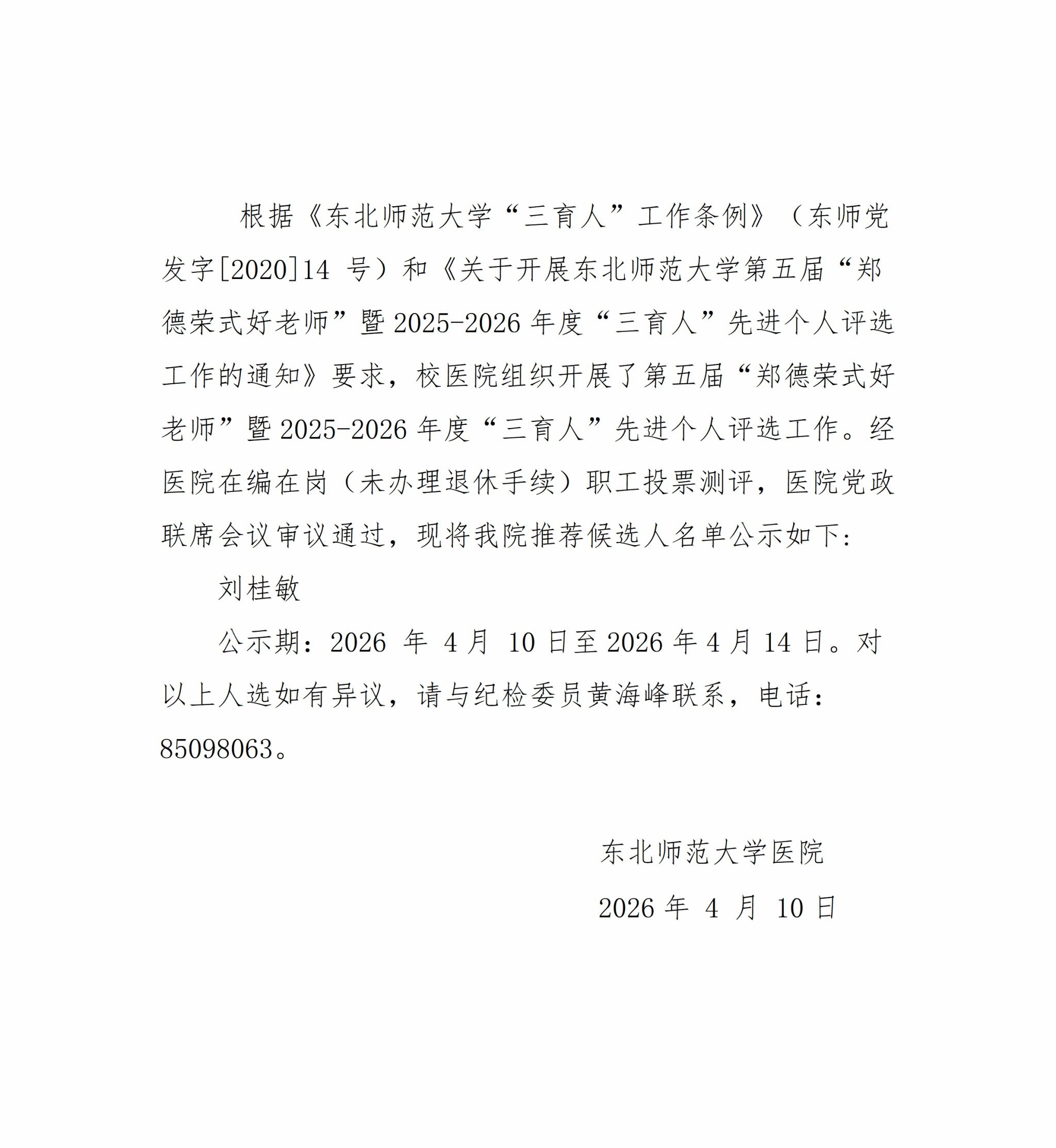 医院“2025-2026年度“三育人”先进个人”评选结果公示